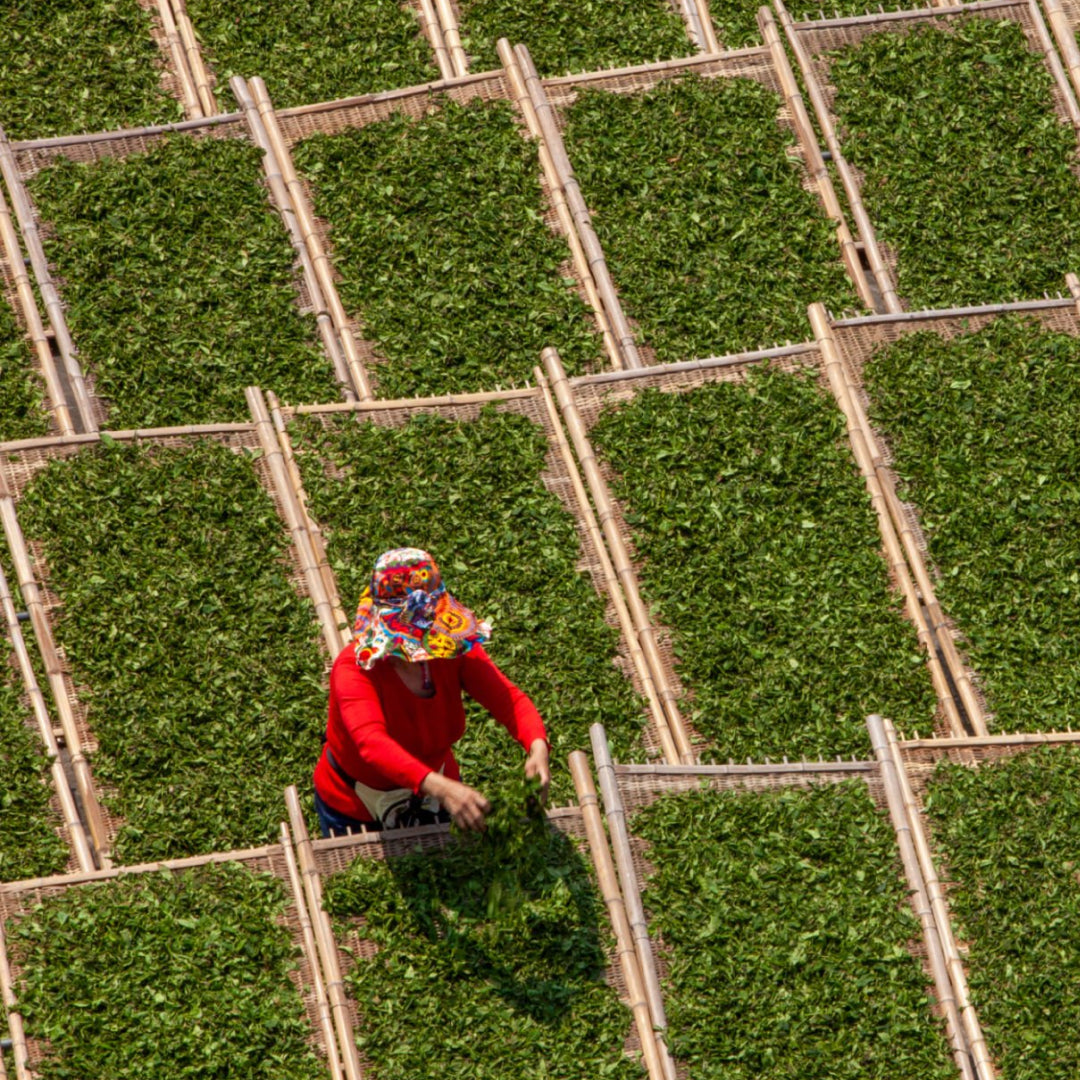 In order to produce oolong Japanese tea, the farmer needs to first accelerate the oxidation process and then stop the oxidation process. To accelerate the oxidation process, the tea is “withered” meaning it is laid out on these large mats and allowed to be heated by the sun.
