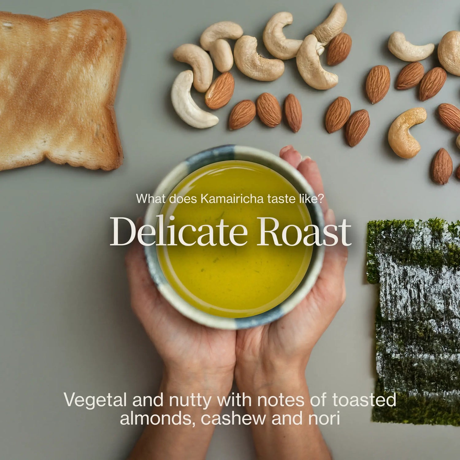The flavor of Kamairicha plays more on these nutty notes, with flavors of almonds, toasted cashews and roasted seaweed. This tea does a great job at combining the warmer taste profiles of fully roasted teas, with the fresher and more vegetal flavors of unroasted teas.
