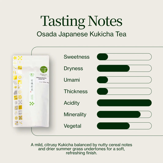 The flavor of kukicha is much milder compared to a tea like sencha or gyokuro. The addition of the stems really softens these steamed vegetable notes that Japanese green teas are typically known for. The liquid of the kukicha tea becomes clearer, thinner and there is more minerality and astringency in the taste.