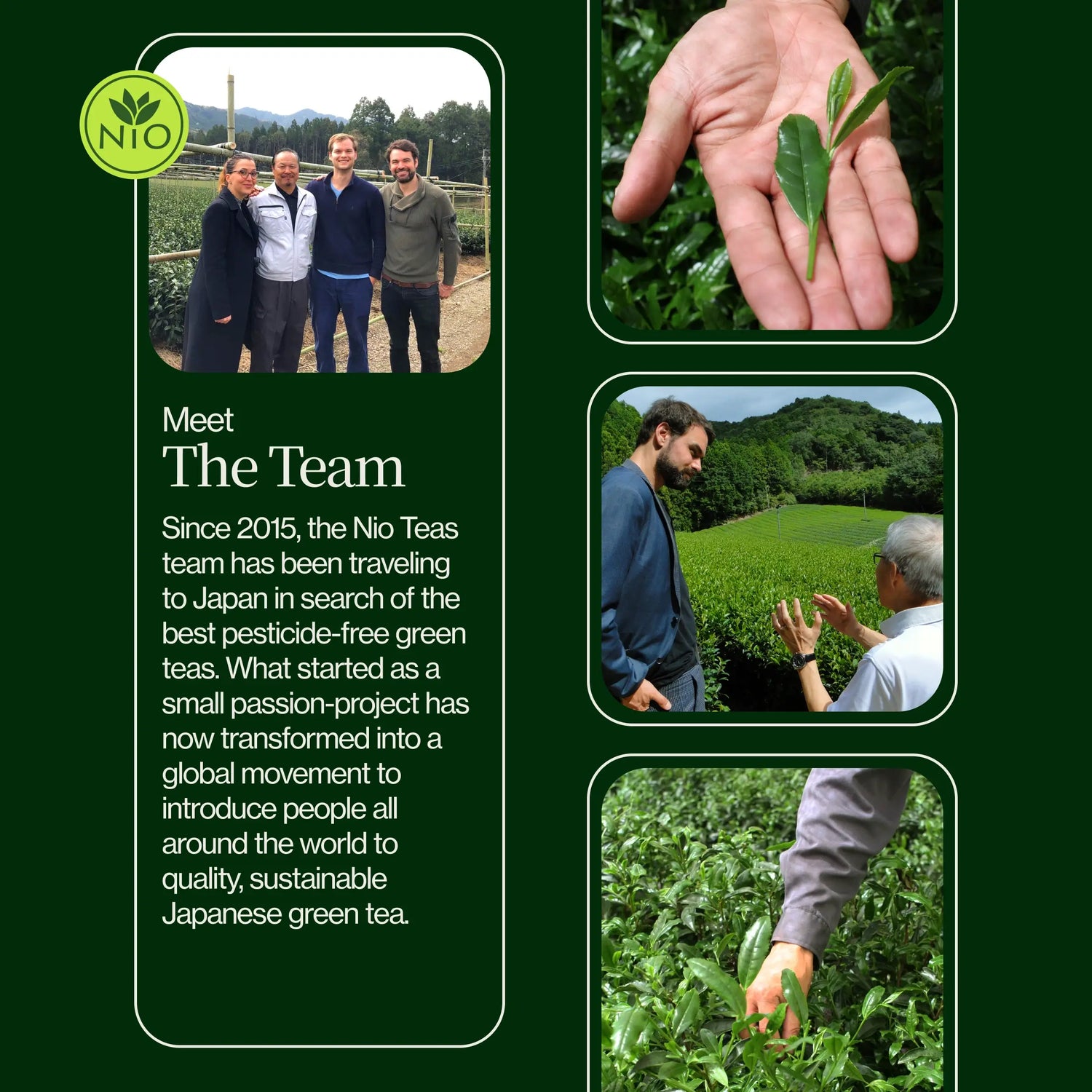 At Nio, we pride ourselves in how carefully we select our teaware and Japanese green tea. We frequently travel to Asia and Japan to meet all of our farmers and partners in person and get to know them and their families. We only source from the best organic tea farms.