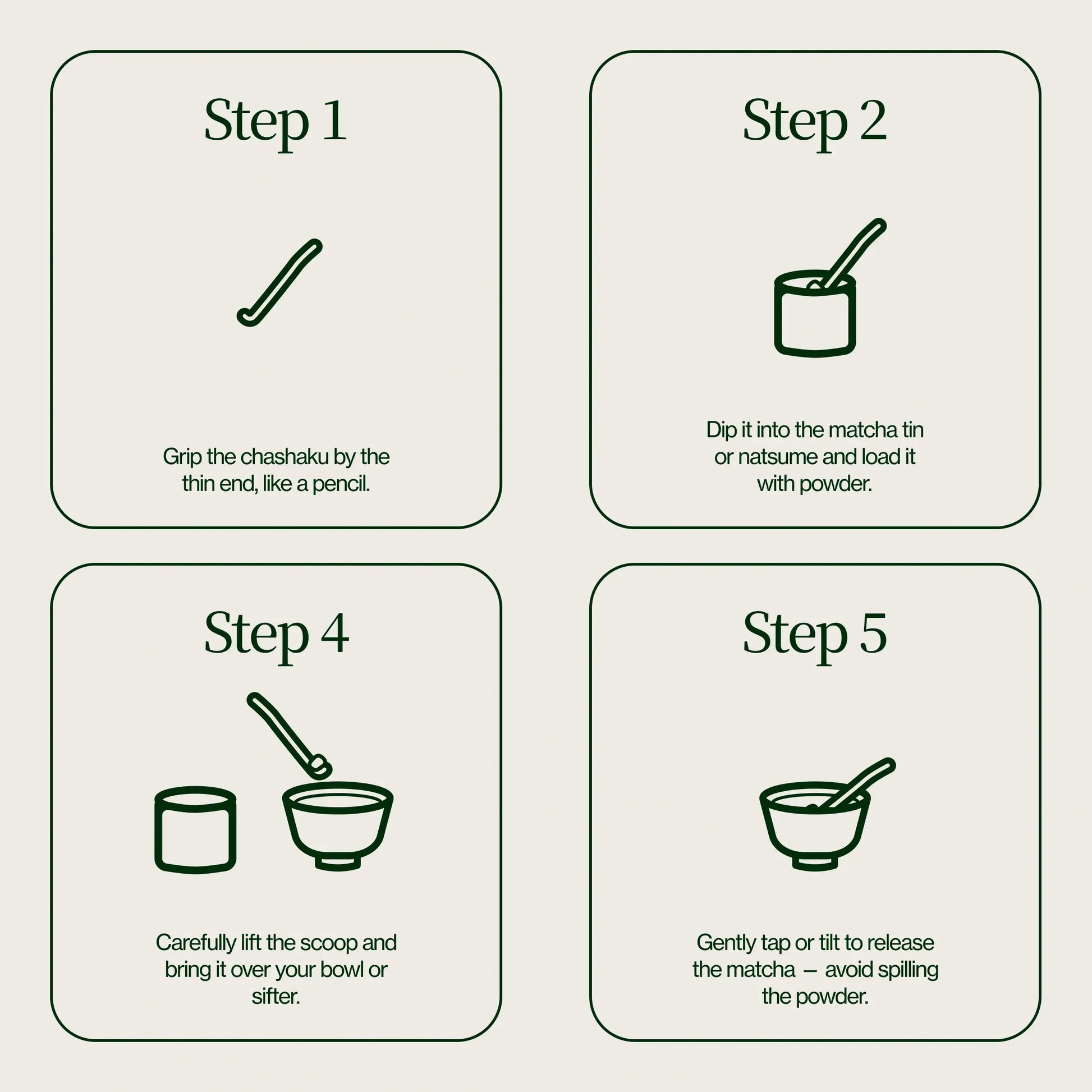 The Chashaku Bamboo Spoon is a traditional Japanese utensil used to measure and transfer matcha powder into your tea bowl. It ensures precise portions and preserves the purity of the powder.
