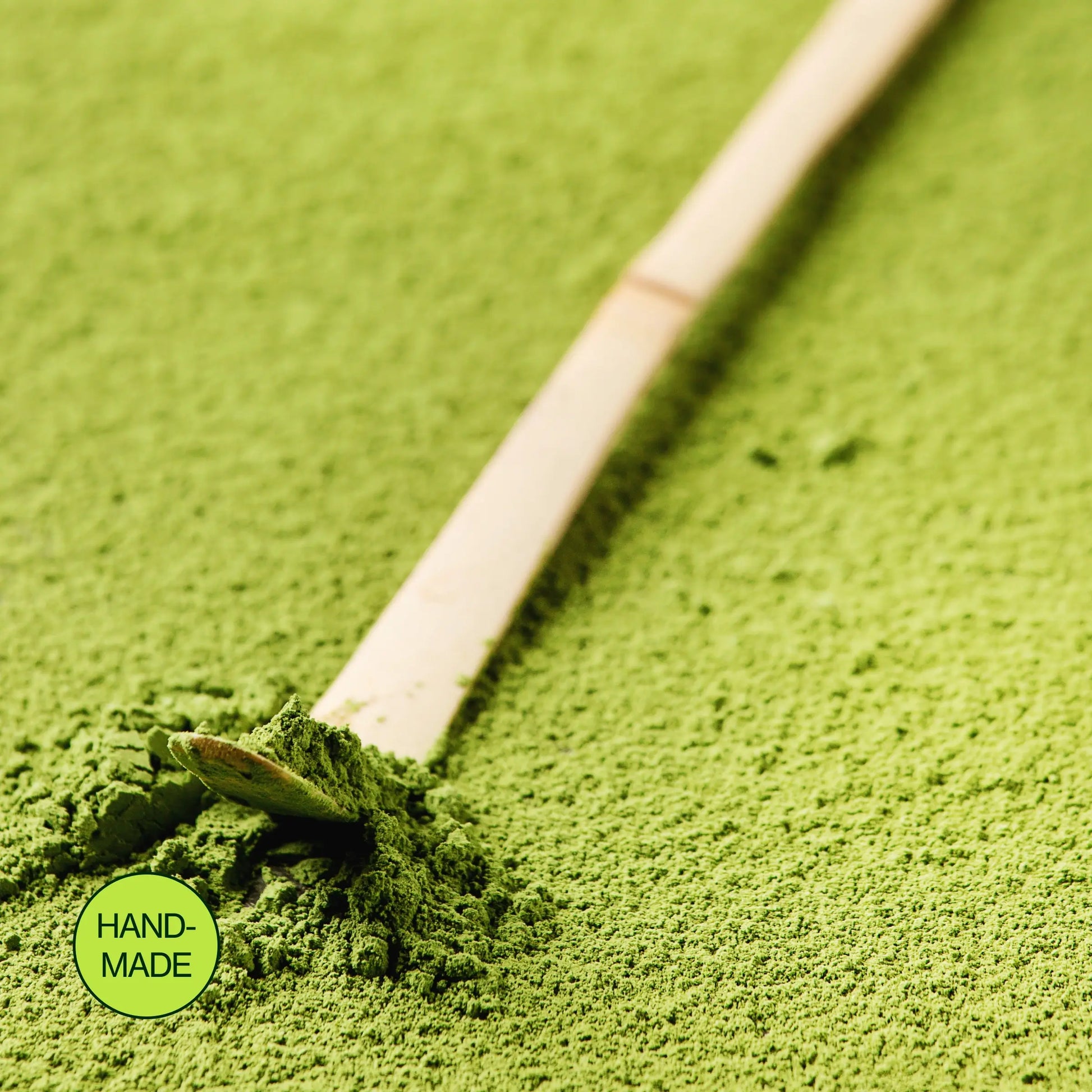 Our Chashaku is hand-carved from a single piece of natural bamboo, following traditional Japanese craftsmanship methods for durability and authenticity.
